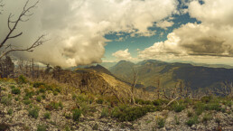 Una zona que sufrió incendio forestal, a pesar del daño la naturaleza regenera la parte afectada.